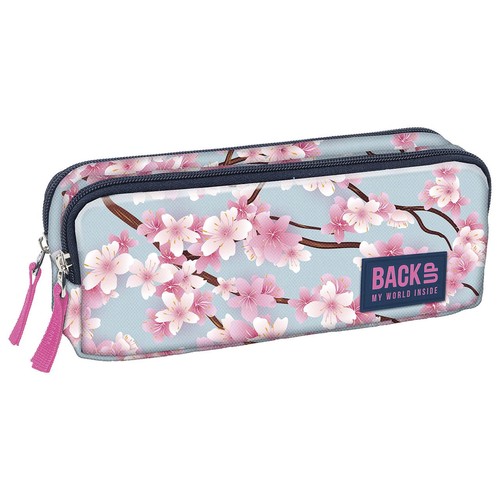 Piórnik BackUP model B 25 w kolorze błękitnego nieba na tle którego widnieją piękne, pastelowe kwiaty wiśni, przez cały rok szkolny będzie przypominał nam o pięknej wiośnie i słonecznych dniach. Wyposażenie: - 2 zapinane komory - ściągacze zamka z tkaniny - podszewka z nadrukiem logo - rozmiar 23x11x