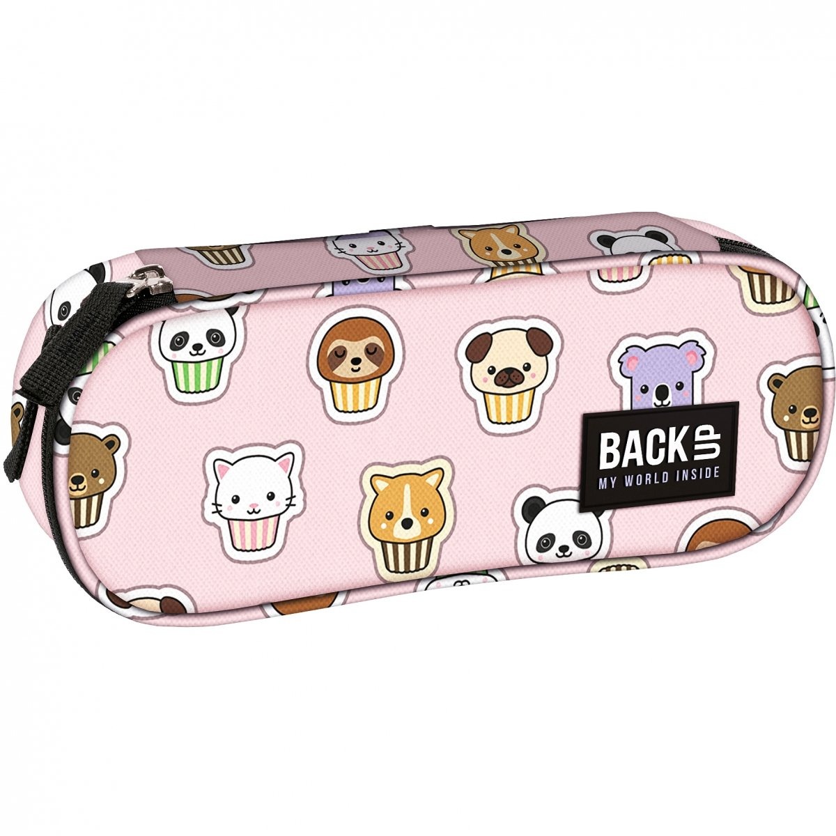 Urocze zwierzaki w postaci kolorowych muffinek - czy może być coś słodszego? Ich fioletowe, białe i brązowe barwy w połączeniu z pastelowym różem materiału i czarnymi dodatkami tworzą piórnik idealny. Urocze muffinko-koty, pieski, pandy i koale bawią swym cudacznym wyglądem i osładzają każdy dzień. Z tak dobranymi kompanami można zaczynać swoją szkolną przygodę. Jednokomorowy piórnik BackUP posiada: