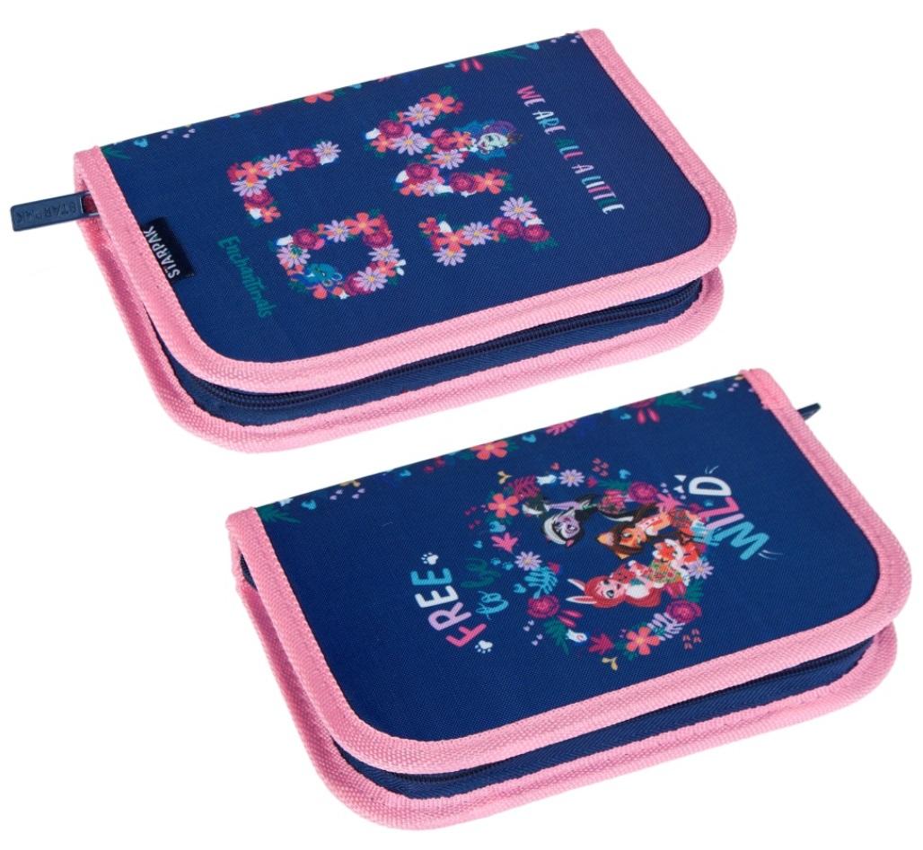 Duży piórnik z kolekcji Starpak z licencją Enchantimals. Dzięki modnej grafice, użytkowanie go to czysta przyjemność. Zapoznaj się również z innymi produktami Starpak z serii Enchantimals! Duży piórnik z 2 skrzydełkami i elastycznymi uchwytami na przybory szkolne zapinany na mocny zamek. Pozwoli pomieścić wszystkie potrzebne artykuły piśmiennicze i pozwoli samemu skompletować asortyment. Pomieści flamastry, kredki, pióro, długopis, ołówek, plan zajęć i wiele innych. Produkt jest wyrobem tekstylnym. Przeznaczony dla dzieci w wieku: 3+. Wymiary produktu(wys.x szer. x gł.) [cm] 13,5x20,5x4.