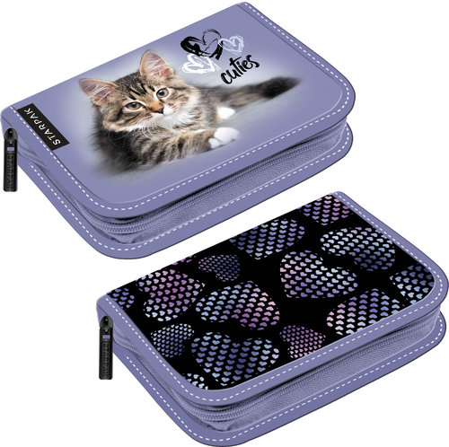 Duży piórnik z kolekcji Starpak Kitty. Dzięki modnej grafice, użytkowanie go to czysta przyjemność. Zapoznaj się również z innymi produktami Starpak z serii Kitty! Piórnik bez wyposażenia, z elastycznymi uchwytami na przybory szkolne, zapinany na mocny zamek. Pozwoli pomieścić wszystkie potrzebne artykuły piśmiennicze i samemu skompletować asortyment taki jak: flamastry, kredki, pióro, długopis, ołówek, plan zajęć oraz wiele innych. Produkt jest wyrobem tekstylnym. Przeznaczony dla dzieci w wieku: 3+. Wymiary produktu(wys.x szer. x gł.) [cm]: 13,5x20,5x3.