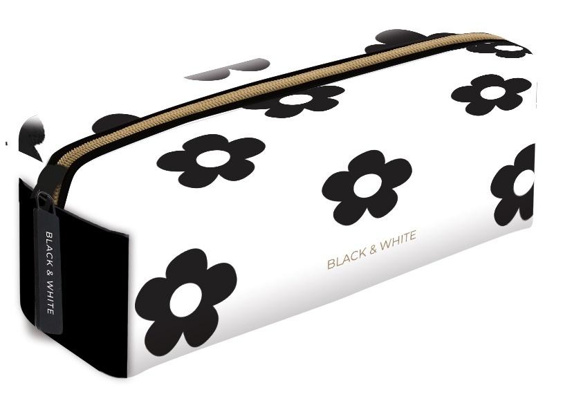 Stylowy piórnik z kolekcji BLACK & WHITE to eleganckie i praktyczne akcesorium, które doskonale sprawdzi się zarówno w szkole, jak i na co dzień. Minimalistyczna kolorystyka czerni i bieli w połączeniu z nowoczesnymi wzorami nadaje mu ponadczasowy, modny charakter.