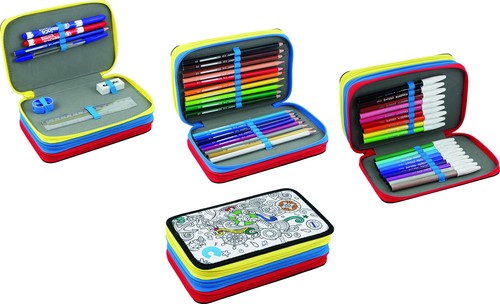 – do kolorowania – z wyposażeniem, trzykomorowy, zamykany na zamek błyskawiczny – zawartość: 18 pisaków Carioca Doodles, 18 kredek ołówkowych Carioca Tita, 2 pisaki do tkanin Carioca Fabric, ołówek HB Carioca, długopis Corvina 51, linijka, temperówka, gumka do wymazywania Carioca – żywe kolory – wymiary: 19,5x13,2x6,7 cm – zgodny z wymaganiami UE