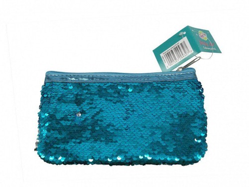 Piórnik cekinowy niebieski, zamykany na suwak, bez wyposażenia.