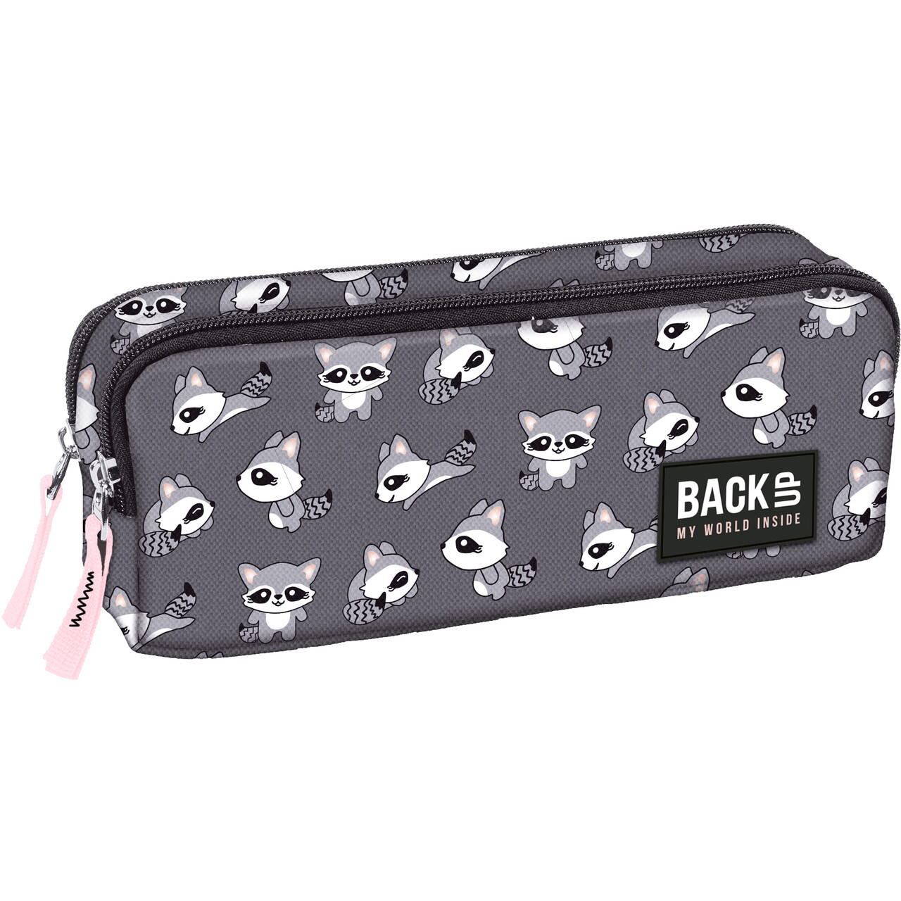 Szary piórnik w słodkie szopy, ciekawym akcentem są tu różowe uchwyty zamka.