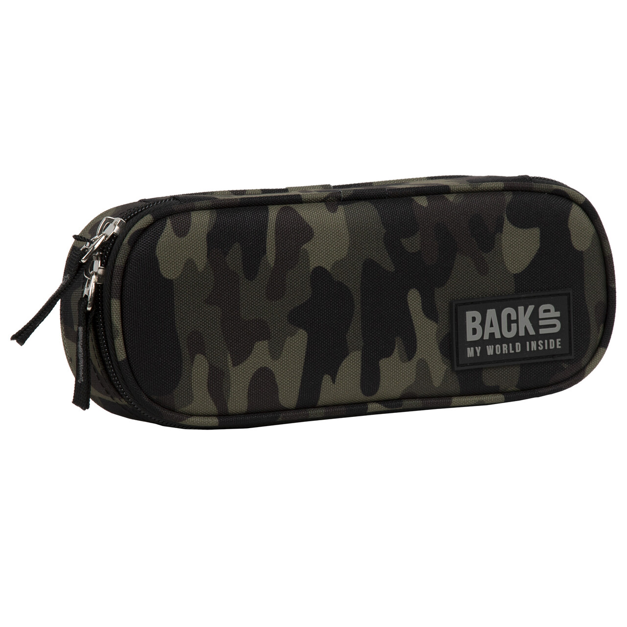 Piórnik jednokomorowy w klasyczny motyw bardzo ciemnego moro w odcieniach khaki.