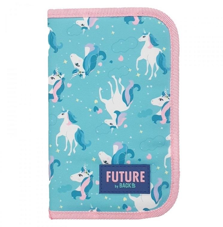 Wysokiej jakości piórnik szkolny z wyposażeniem.
