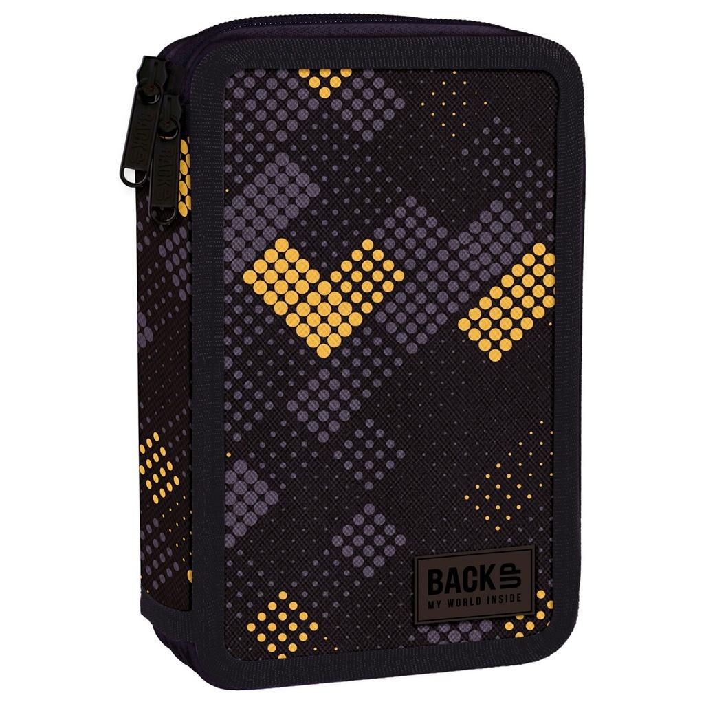 Czarny, dwukomorowy piórnik z wyposażeniem w żółte i szare punkciki, które układają się w geometryczne kształty, tworzą w całości niesamowity motyw! Kontrastowy, żółty kolor dodaje charakteru. Piórnik jest bardzo stonowany, a jednocześnie ma w sobie coś intrygującego. Dodatkowo nie trzeba się martwić, że będzie widać na nim jakieś zabrudzenia.