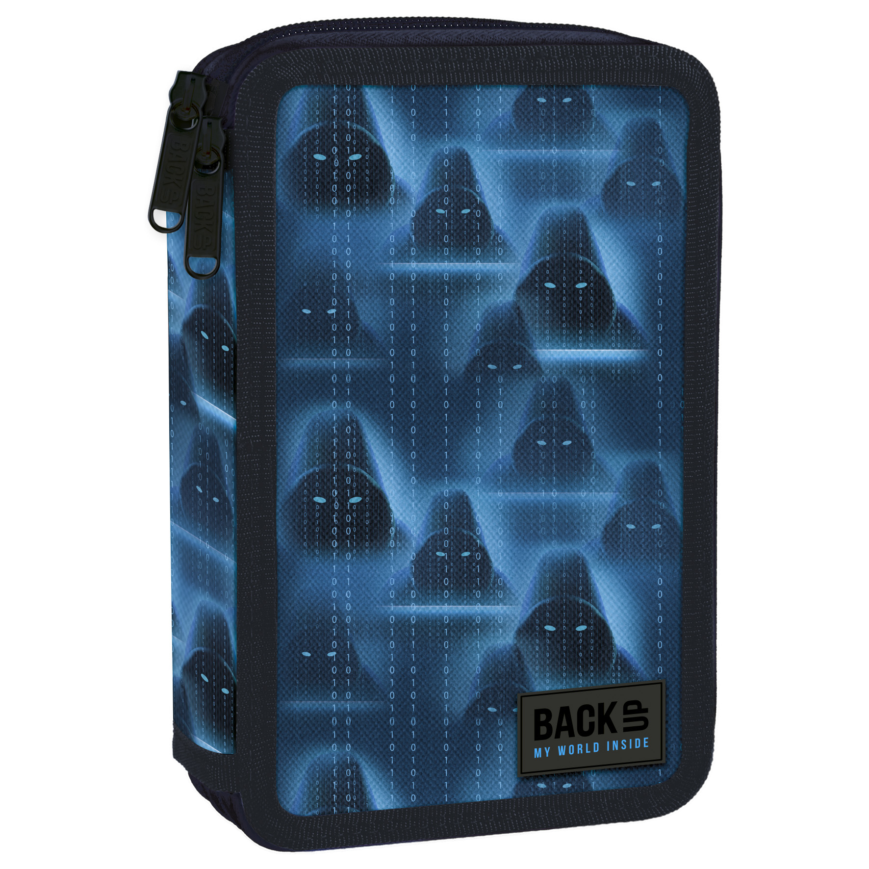 Wirtualny, tajemniczy byt, postać z popularnej gry, zakonnik, kosmita, a może duch o niecnych zamiarach... Ile ludzi tyle pomysłów. A Tobie z czym kojarzy się ten motyw? Jedyne, co możemy powiedzieć na pewno, że to czarny wzór z niebieskimi odcieniami podkręcającymi tajemniczość. Przenieś się w wirtualny świat pełen przygód i tajnych misji. Wyjątkowy print sprawi, że piórnik BackUP będzie towarzyszył Ci każdego dnia. Dwukomorowy piórnik z wyposażeniem: