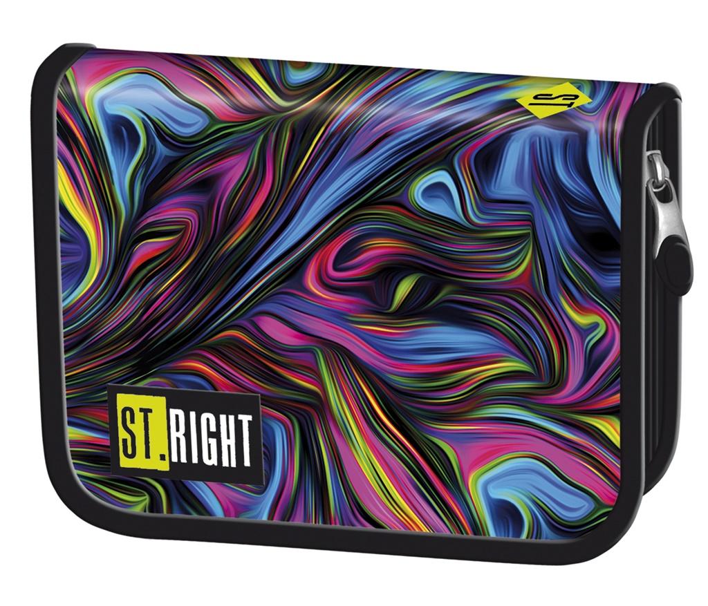 Funkcjonalność: pojedynczy piórnik z dwiema klapkami zamykany za pomocą zamka błyskawicznego ergonomicznie wyprofilowany, solidny uchwyt do suwaka posiada przegrody i liczne mocowania ułatwiające organizację przyborów szkolnych Wymiary: wysokość: 20,5 cm szerokość: 14 cm głębokość: 3,5 cm