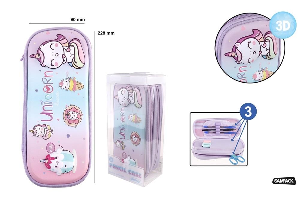 Opakowanie Piórnik dwukomorowy 23x9cm jednorożec