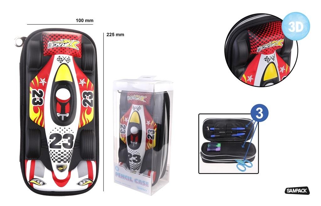 Piórnik dwukomorowy 23x9cm wyścigówka
