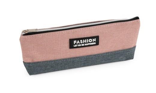 tekstylne etui z zamkiem błyskawicznym, zmywalna powierzchnia, wymiary piórnika 21 x 8 x 3 cm