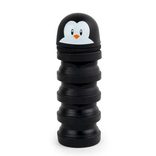 silikonowy składany piórnik, może być używany jako przybornik na kredki, wysokość po złożeniu 12,5 cm, wysokość po rozłożeniu 21 cm, średnica 6,5 cm