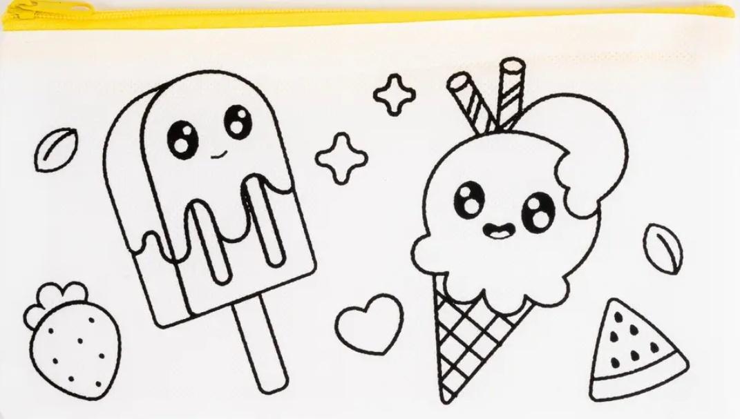 tekstylne etui z szablonem do malowania, z zamkiem błyskawicznym,, wymiary piórnika 21,5 x 13 cm