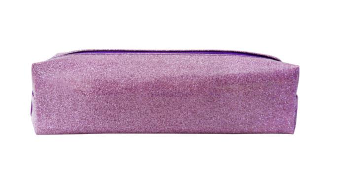 Piórnik fioletowy, brokatowy o wymiarach 7x20.