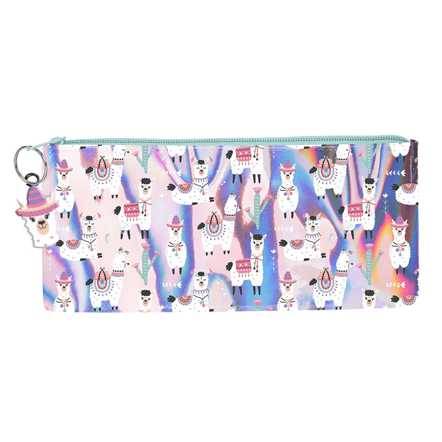 Piórnik holograficzny. Zapinany jest na suwak, bardzo pojemny o prostokątnym kształcie, jednokomorowy, doskonały na przybory szkolne. Idealnie sprawdzi się również jako kosmetyczka.