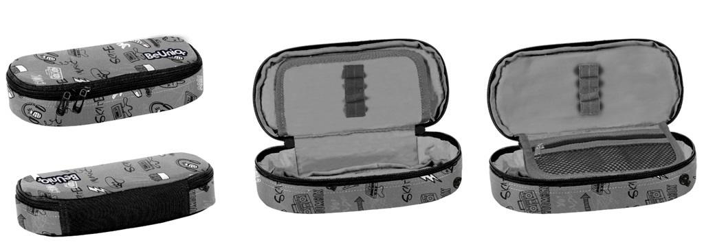Piórnik - przybornik na dodatkowe akcesoria szkolne. Wewnątrz klapka z gumkami do ołowków i długopisów z jednej strony oraz z kieszonką na zamek z siatki z drugiej.