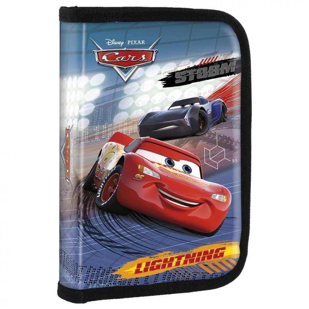 Piórnik jednokomorowy, dwuklapkowy ozdobiony motywami Auta. Zamek błyskawiczny z ozdobnym uchwytem. Nie zawiera wyposażenia.