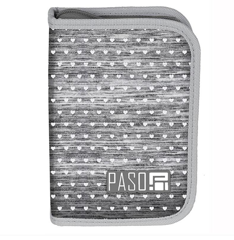 Piórnik jednokomorowy z wyposażeniem szary w serca