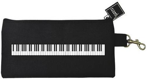 Czarny piórnik o wymiarach 19x9 cm, może służyć również jako kosmetyczka. Dzięki karabińczykowi można go przypiąć do plecaka. Piórnik zdobi klawiatura.