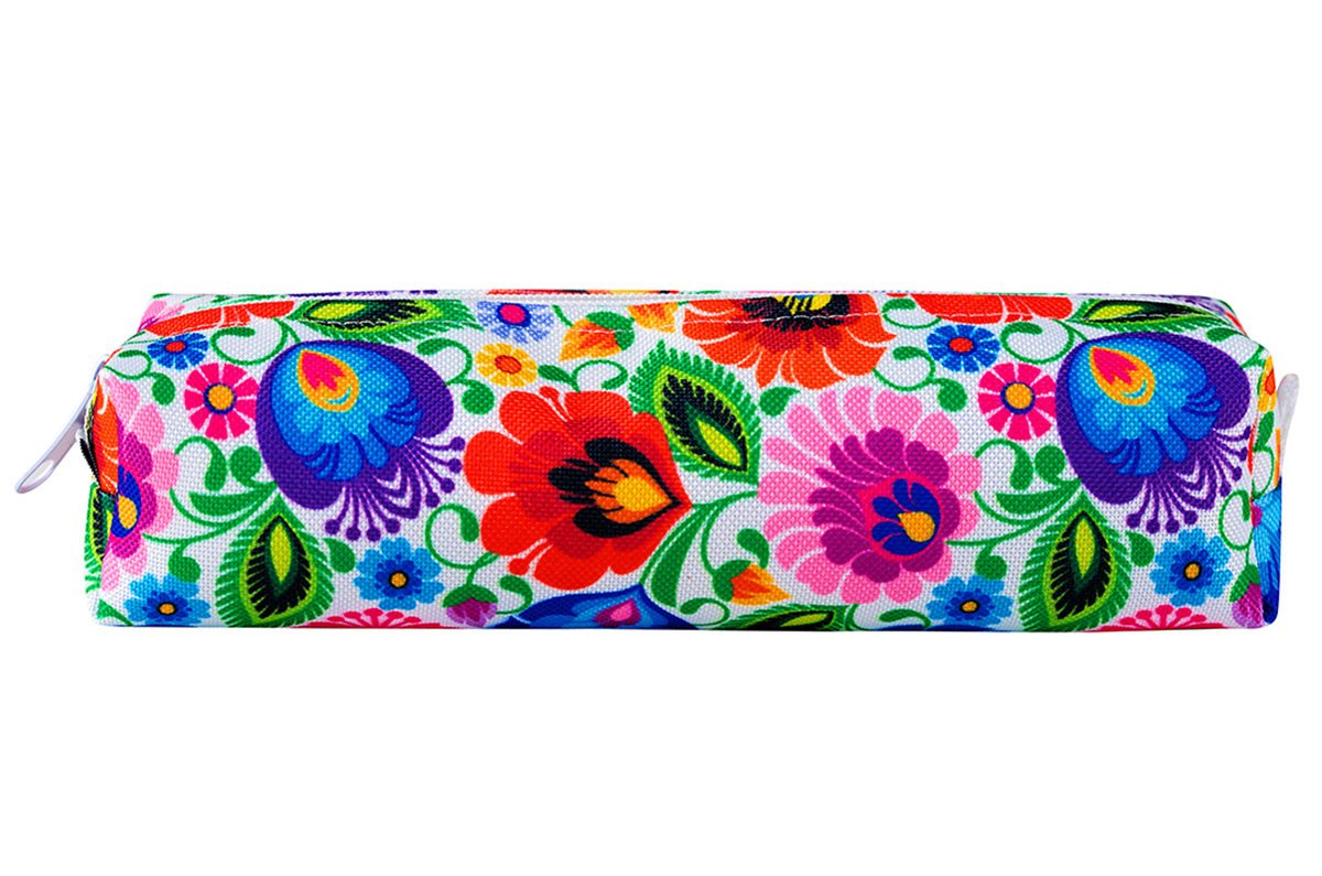Piórnik z motywem łowickich kwiatów z wycinanki