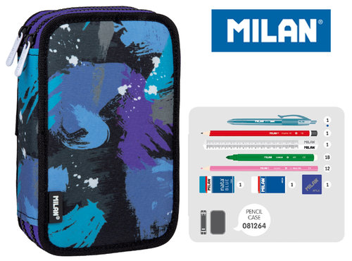 Opakowanie Piórnik MILAN 2-poziomowy z wyposażeniem ARTY GEO niebieski