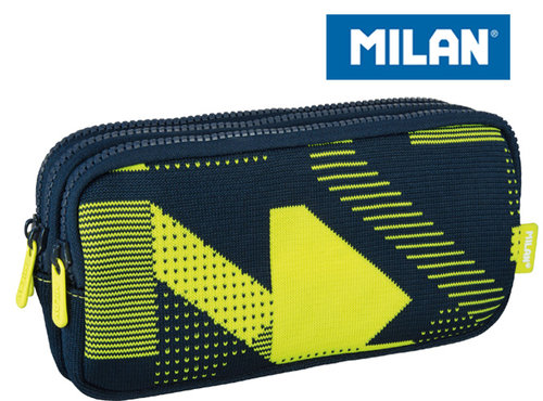 Piórnik saszetka MILAN z 3 komorami z kolekcji KNIT w kolorze czarno - żółtym. Każda komora zapinana osobno na suwak. Wymiary: 22 x 11 x 6,5 cm Materiał wierzchni: 100% poliester. Podszewka 150D poliester.