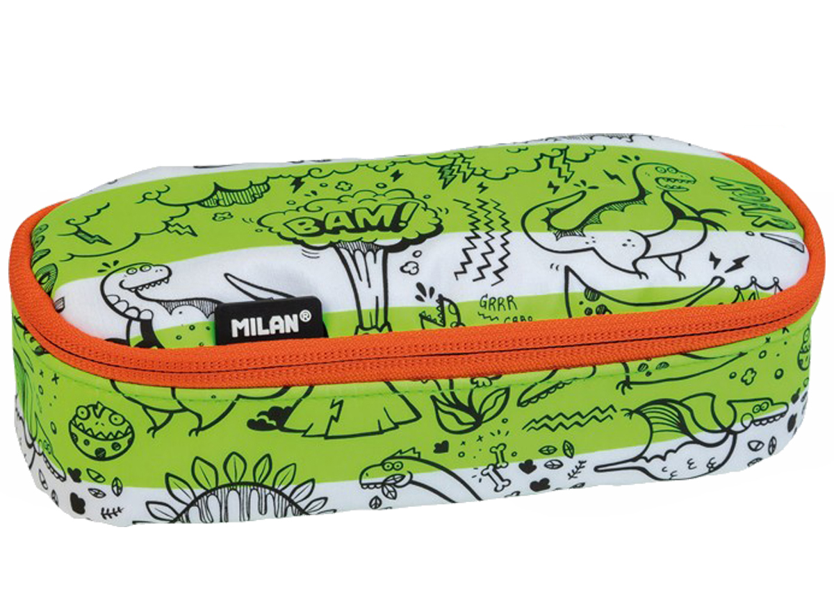 Piórnik owalny MILAN z kolekcji MILLION YEARS AGO zapinany na suwak w kolorach fluo: zielonym i białym.