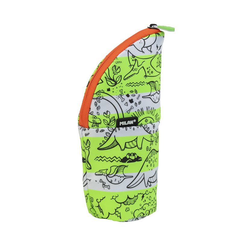 Stojący piórnik MILAN z kolekcji MILLION YEARS AGO zapinany na suwak w kolorach fluo: zielonym i białym.