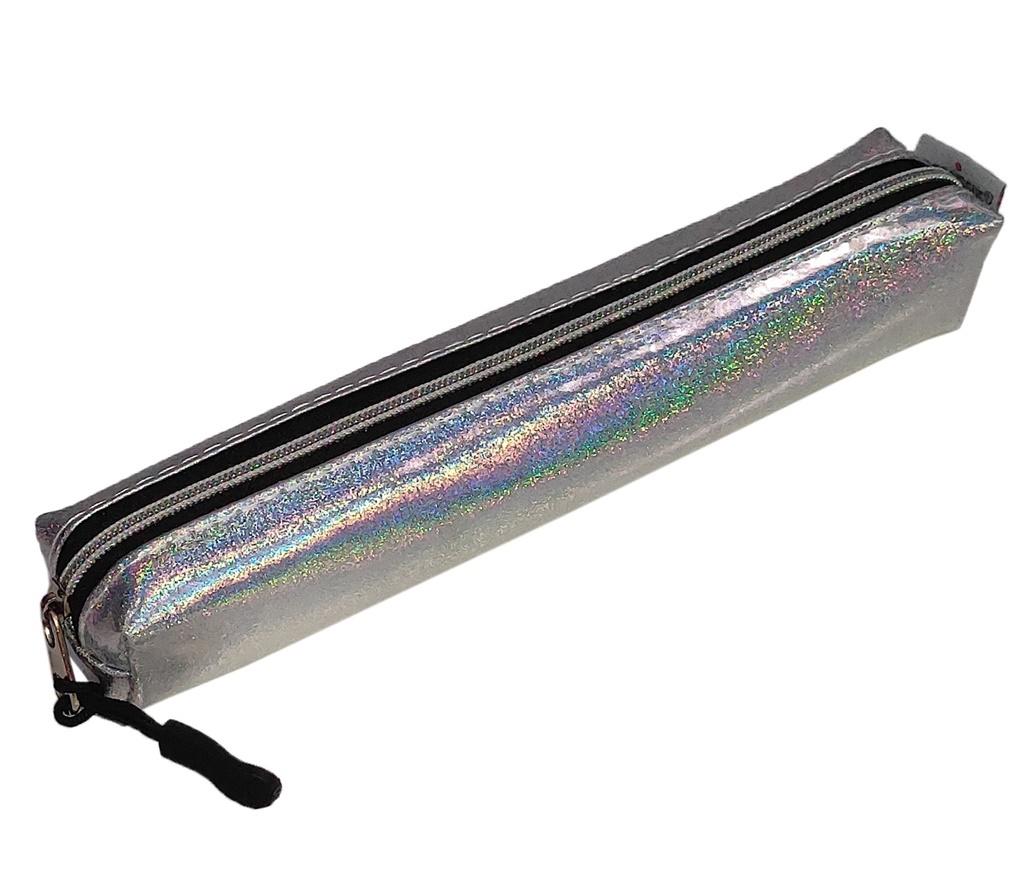 Mini piórnik marki Narcissus. Wykonany z gładkiego, subtelnie błyszczącego tworzywa, które mieni się wszystkimi kolorami tęczy z efektem holograficznym. Zapinany na trwały zamek. Niewielki rozmiar pozwala na zabranie go ze sobą w każde miejsce. Zmieści w sobie najpotrzebniejsze rzeczy. Wymiary: 18x3x3 cm.
