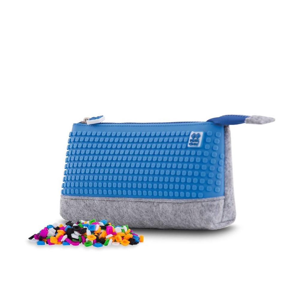 Duży, wielofunkcyjny szary piórnik na suwak PIXIE CREW, z kreatywnym niebieskim panelem, na którym można tworzyć oryginalne i spersonalizowane grafiki, za pomocą małych silikonowych pikseli. Wykonany został z silikonu i filcu, aby chronić zawartość przed wstrząsami i uderzeniami. Piórnik zapinany jest na suwak. Wewnątrz znajduje się wystarczająco dużo miejsca nie tylko na przybory szkolne, ale również na inne małe rzeczy, które chcemy mieć pod ręką. Dlatego doskonale sprawdzi się także jako kosmetyczka czy saszetka. Piórnik jest sprzedawany z dodatkowym darmowym zestawem około 100 pikseli.