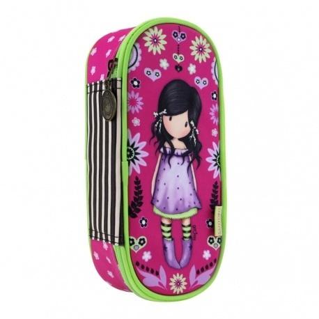 Piórnik z detalami w delikatnych odcieniach błękitu i pudrowego różu. Idealny na najważniejsze przybory do pisania. Wyposażony w specjalną klapkę na ołówki i długopisy. Suwak ozdobiony medalionem w stylu antycznego mosiądzu z główką dziewczynki Gorjuss.