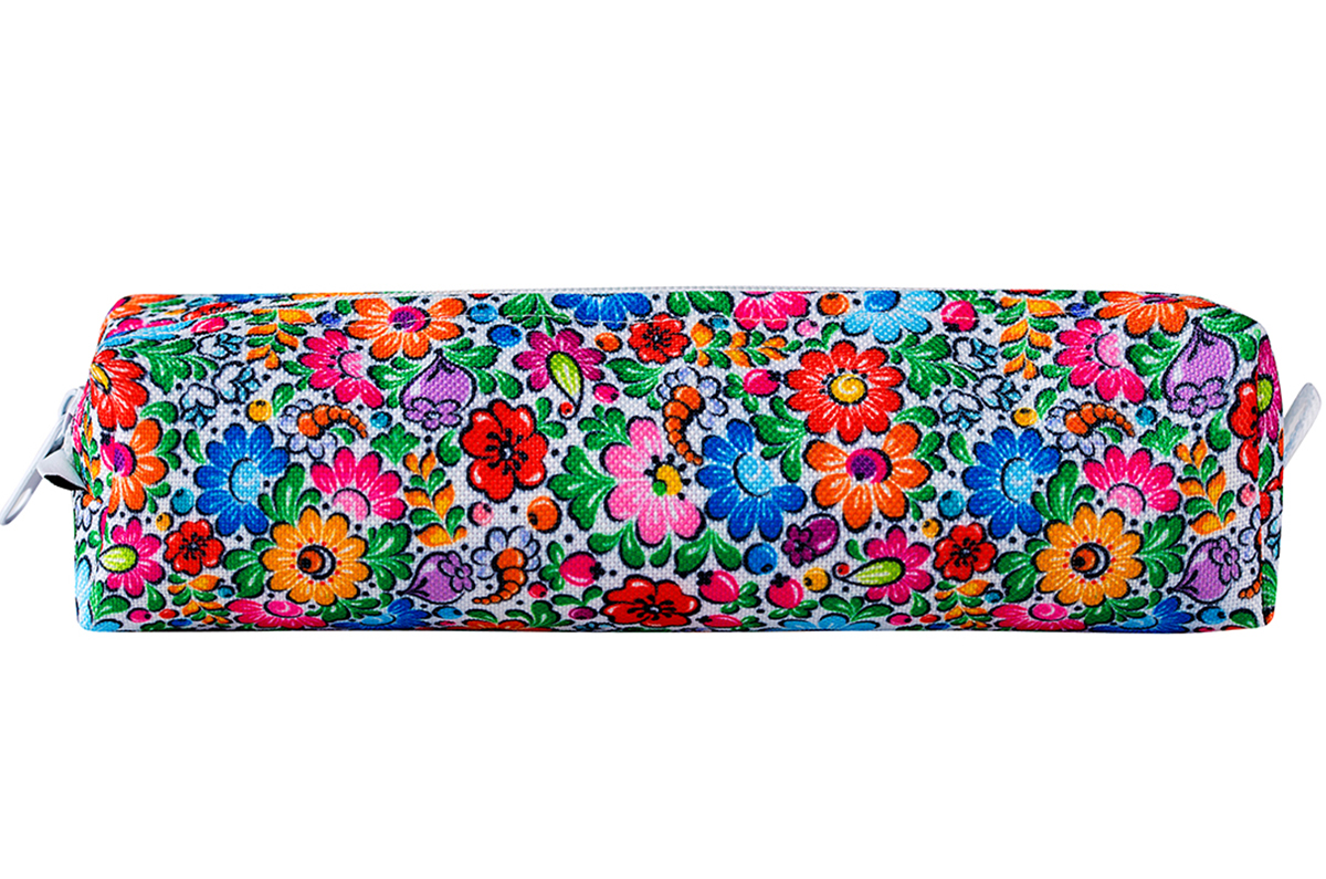 Piórnik z motywem opolskim:o kształcie prostopadłościanu,wykonany z poliestru,jednokomorowy, zapinany na zamek błyskawiczny,nie posiada dodatkowego usztywnienia,piórnik idealny do szkoły, biura, na uczelnię,może służyć także jako kosmetyczka do kobiecej torebki.