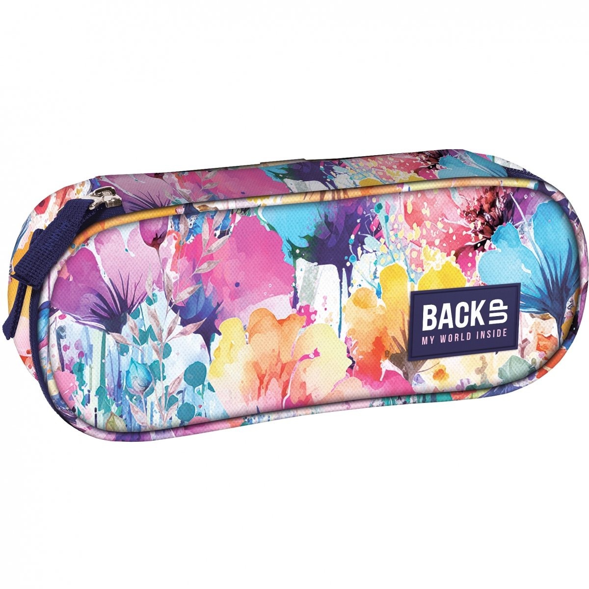 Pełen ekspresji i intensywnych barw piórnik, który przenosi w beztroskie letnie dni. Kwiaty w odcieniach żółci, fioletu, błękitu i różu idealnie łączą się z granatowymi dodatkami, tworząc niezwykle energiczną całość. Dziewczęcy a zarazem pełen dynamiki piórnik młodzieżowy wywoła uśmiech na twarzy nawet w najbardziej pochmurne dni. Jednokomorowy piórnik BackUP posiada: