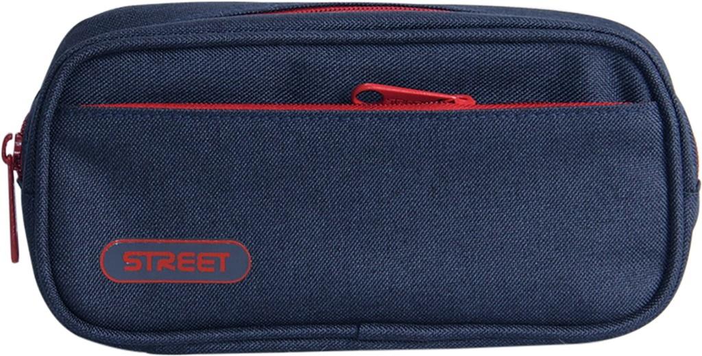 Wygodny, pojemny piórnik dwukomorowy w szarym odcieniu z ciekawym wykończeniem. Obie kieszenie zapinane na zamek błyskawiczny. Delikatne logo STREET? dodaje stylu. Wymiary: 21 x 9,5 x 5,5 cm