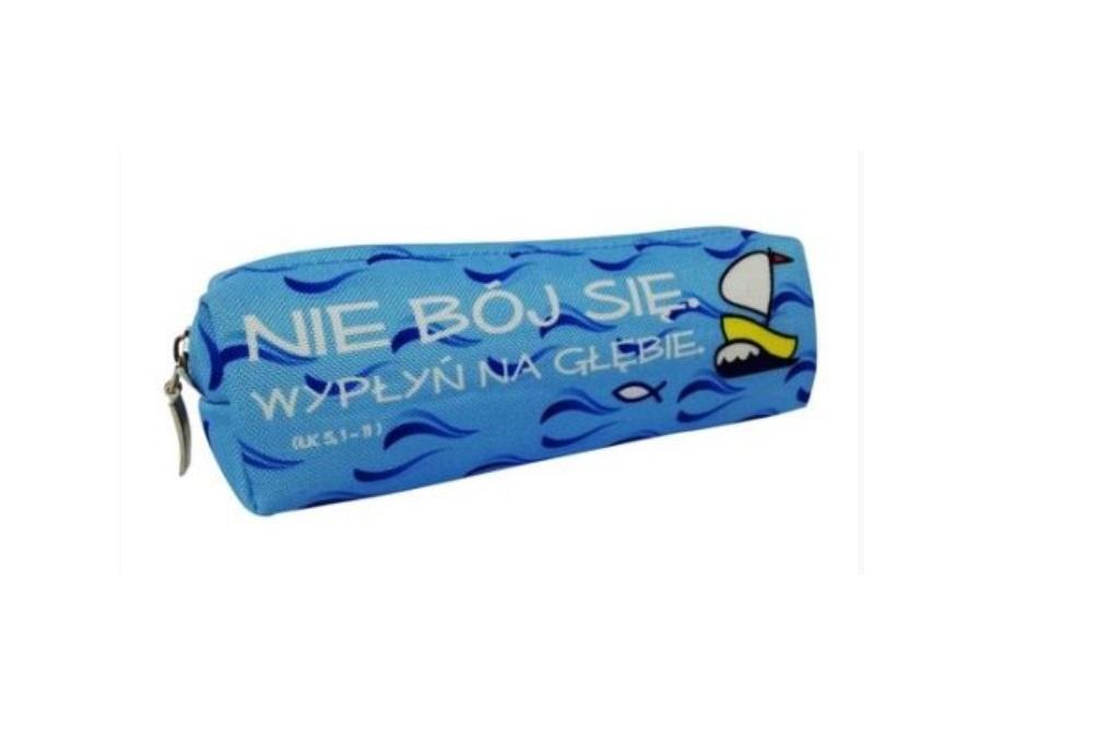 Piórnik jednokomorowy wykonany z grubego materiału typu pianka. Nadruk - cytat z Biblii. Piórnik można prać w pralce. Wymiary 18 cm x 5 cm x 5 cm. Bardzo ładnie wykonany. Produkt polski.