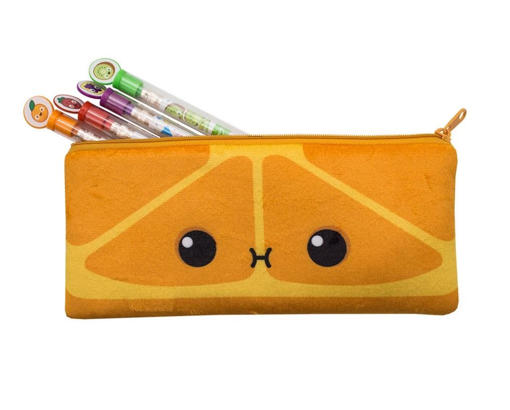 Pachnący Pluszowy Piórnik - Pomarańcza. Śliczny i pachnący pomarańczą pluszowy piórnik o wyglądzie zabawnej pomarańczki jest idealny aby schować w nim ołówki, kredki, długopisy i inne skarby. Wykonany z wytrzymałego i miękkiego pluszu.Zapinany na zamek błyskawiczny.