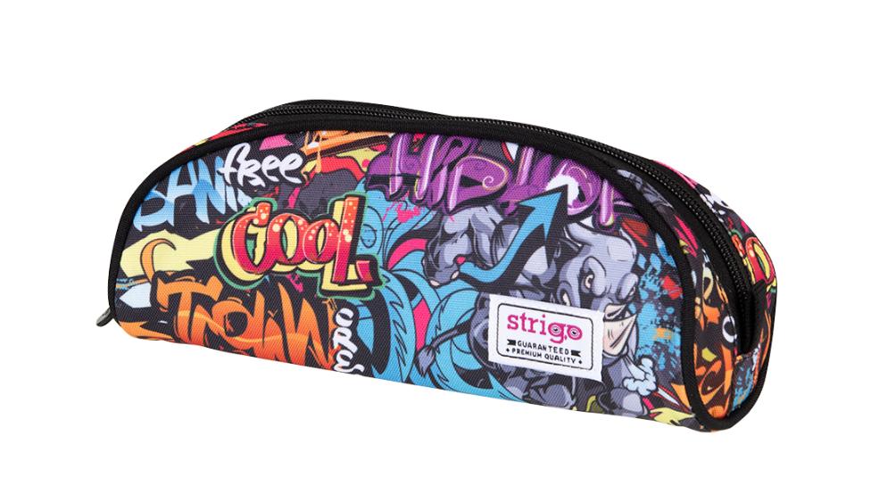 Pojemny piórnik typu saszetka, z kolekcji Comic. Wykonany z wysokiej jakości materiału z młodzieżowym motywem graffiti.