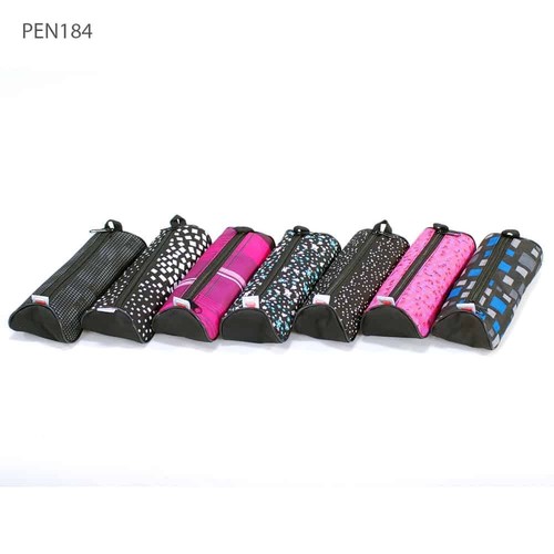 piórnik z nadrukiem, jednokomorowy, zamykany na suwak, wykonany z tkaniny kaletniczej kodura. Mix wzorów - wybierane losowo