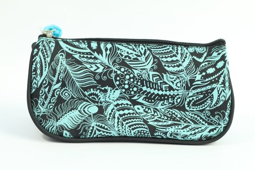 PIÓRNIK kosmetyczka FASHION piórko, zapinany na zamek zakończony materiałową zawieszką