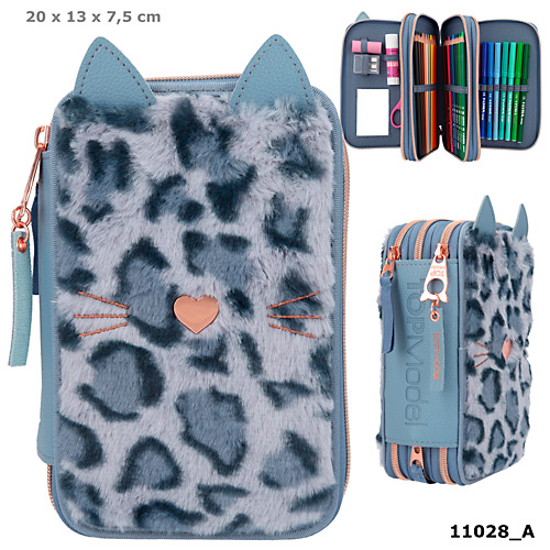 Piórnik z wyposażeniem z kocimi uszami TOPModel, z miękkiego futerka, z modnym zwierzęcym nadrukiem.