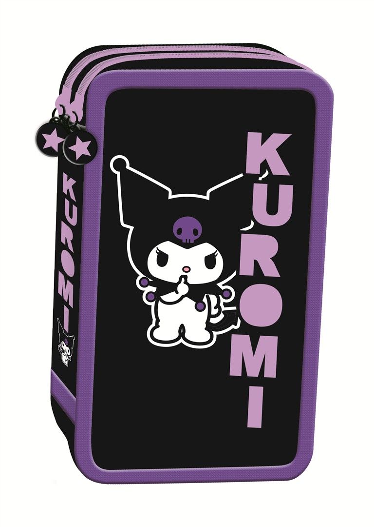 Piórnik szkolny podwójny z wyposażeniem Kuromi black