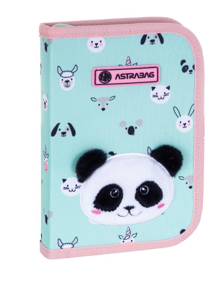 Jednokomorowy piórnik Astrabag Teddy Panda został zaprojektowany z myślą o wszystkich miłośniczkach pand. Na jego froncie znajduje się pluszowy pyszczek tego uroczego stworzenia, który jest przemiły w dotyku. Dodatkowo miętowa kolorystyka przeplatana różem i ikonkami różnych zwierzątek skradnie serce każdej dziewczynki. Piórnik nie posiada wyposażenia. Jednak dzięki pojemnemu i rozkładanemu wnętrzu pomieści niezbędne przybory, w tym kredki, flamastry, ołówki, długopisy i linijki. Piórnik idealnie sprawdzi się w klasach I-IV.