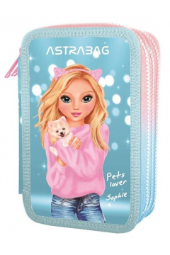 Trzypoziomowy piórnik szkolny marki Astra z motywem dziewczęcym