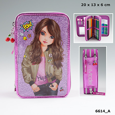 Potrójny piórnik zapinany na suwak.