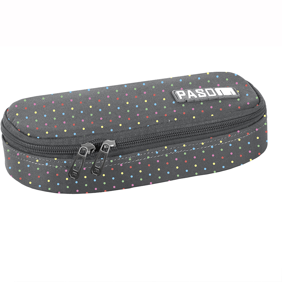Piórnik - przybornik szary w kropki na dodatkowe akcesoria szkolne. Wewnątrz znajduje się klapka, na której z jednej strony są uchwyty na ołowki, długopisy czy inne przybory piśmiennicze, z drugiej funkcjonalna kieszonka na zamek z siatki. Stanowi świetny dodatek do klasycznych piórników, które nie pomieszczą dodatkowych aksesoriów szkolnych, takich jak temperówka, klej, cyrkiel, korektor czy markery. W Paso staramy się, aby nasze produkty były niezwykle poręczne i uniwersalne. Ten piórnik sprawi, że wszystko będzie znajdowało się zawsze na swoim miejscu.