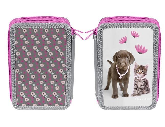 Piórnik 3-komorowy bez wyposażenia. Zadrukowane kolorowe wnętrze.