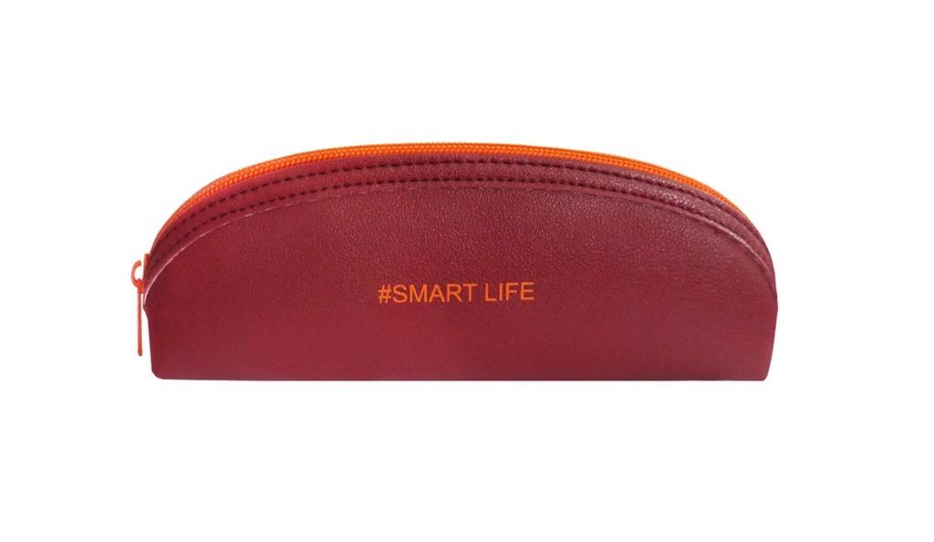 Kolor czerwony z pomarańczowym zamkiem i napisem.