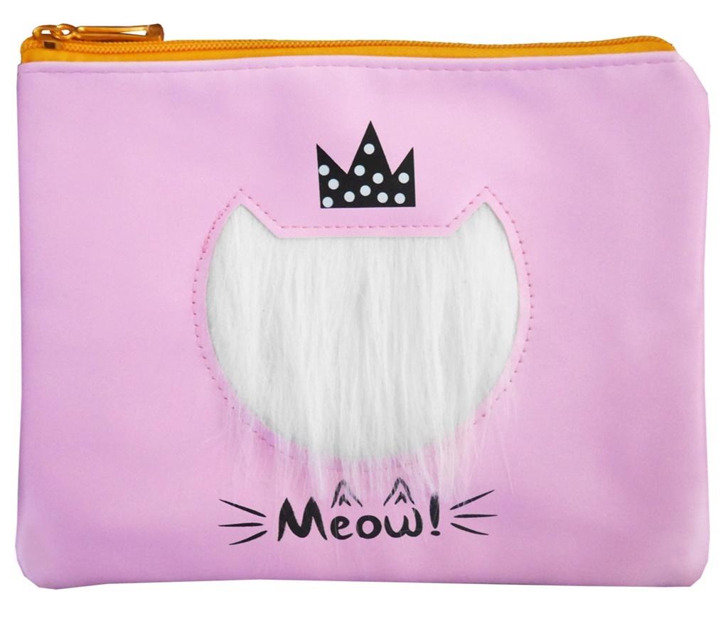 Modny piórnik saszetka z futrzaną aplikacją o wymiarach 21x16 cm.