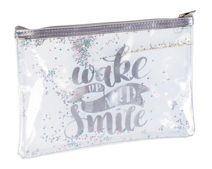 Przezroczysta, wygodna, nieduża saszetka zapinana na zamek błyskawiczny, dzięki czemu nic z niej nie wypadnie. Niezbędny dodatek do każdej torebki. Dostępna w wersji srebrnej oraz złotej. Wymiary: 20 x 14 cm
